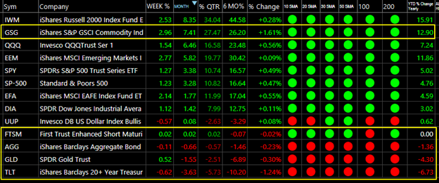 Bond yields ticked higher in the days before the CPI figures were released, but then turned downward again after the numbers came out. Our investment process avoids assets ranked below the FTSM cash benchmark which currently includes corporate and government bonds.